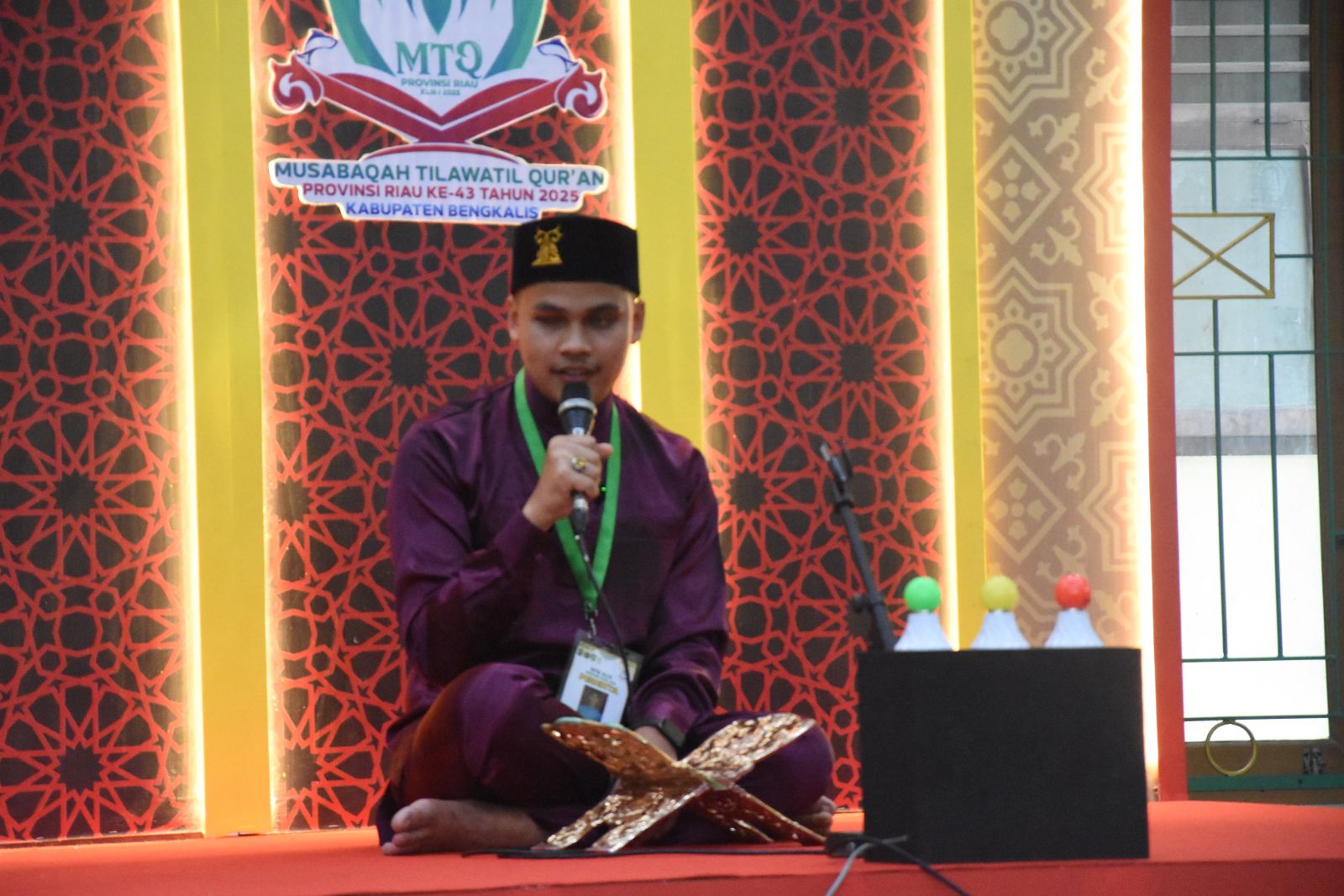 Rambaberita.com, BENGKALIS – Hari ketiga Musabaqoh Tilawatil Qur’an (MTQ) ke-43 tingkat Provinsi Riau, masing-masing cabang perlombaan sudah memasuki babak akhir, sebanyak 6 orang peserta putra putri pada Cabang Tilawah Tunanetra (penyandang disabilitas) juga tidak kalah serunya beradu lantunan tilawah ayat suci Al-Quran, bertempat di Mushola Al-Hikmah Jalan Hangtuah, Kabupaten Bengkalis, Selasa (01/07/25).