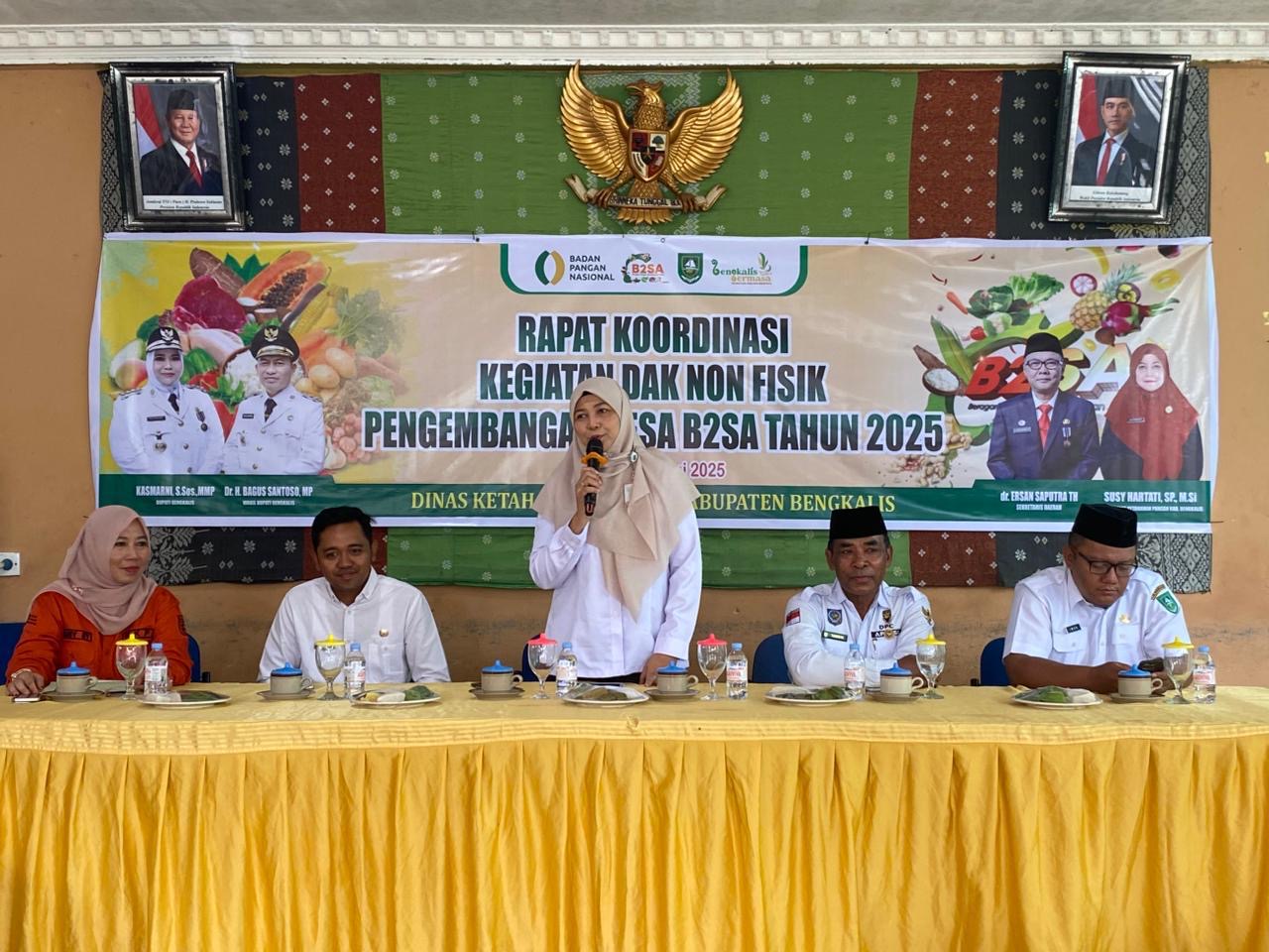Kepala DKP Bengkalis, Susy Hartati, dalam sambutannya kala Rapat Koordinasi Kegiatan DAK Non Fisik di Kantor Camat Rabu, 11 Juni 2025 menyampaikan pengembangan Desa B2SA merupakan langkah strategis dalam menjawab tantangan keragaman pangan dan gizi masyarakat.