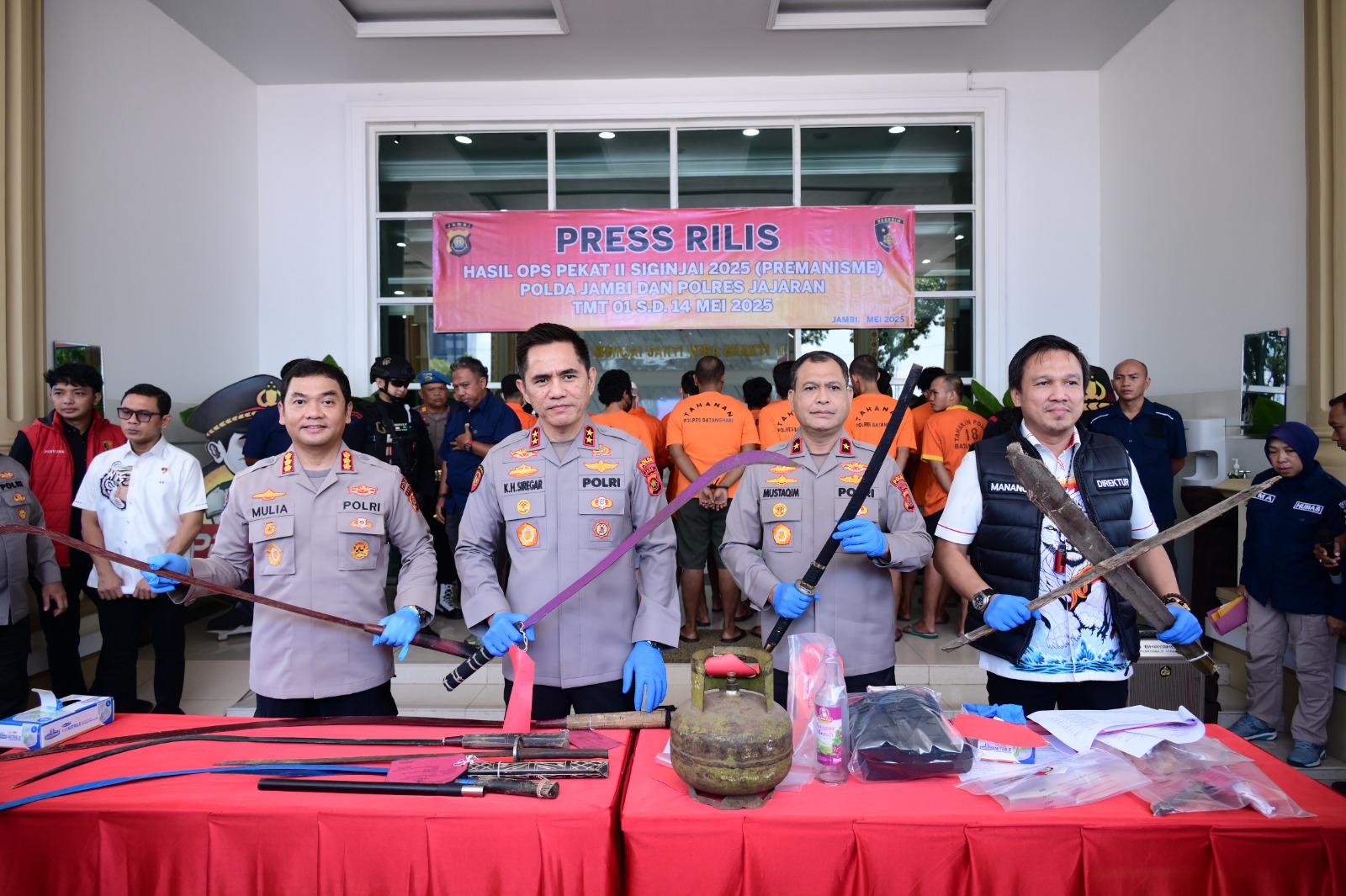 Dalam releasenya tersebut Kapolda Jambi mengungkapkan bahwa Kepolisian Daerah (Polda) Jambi bersama jajaran Polres di wilayah hukumnya berhasil mengungkap dan menindak tegas berbagai aksi premanisme melalui Operasi Pekat II Siginjai 2025 yang berlangsung sejak 1 hingga 14 Mei 2025.