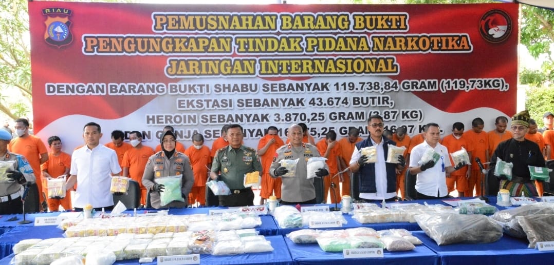 Pemusnahan dilakukan secara simbolis oleh para pimpinan instansi dengan disaksikan oleh jajaran penegak hukum serta awak media. Dalam sambutannya, “Danrem 031/WB menyampaikan apresiasi atas sinergitas dan kolaborasi yang kuat antara TNI, Polri, BNN, serta pemerintah daerah dalam upaya pemberantasan narkoba di wilayah Riau”, Ujarnya.