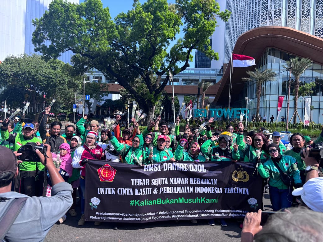 Rambaberita.com, JAKARTA – Dalam semangat persaudaraan dan perdamaian, pengemudi ojek online (ojol) di Jakarta menggelar aksi damai bertajuk “Tebar Sejuta Mawar Kebaikan POLRI, TNI dan Masyarakat” pada hari Selasa, 2 September 2025. Aksi yang mendapatkan dukungan penuh dari aparat keamanan ini berlangsung di kawasan Silang Selatan Monumen Nasional (Monas), Jakarta Pusat.