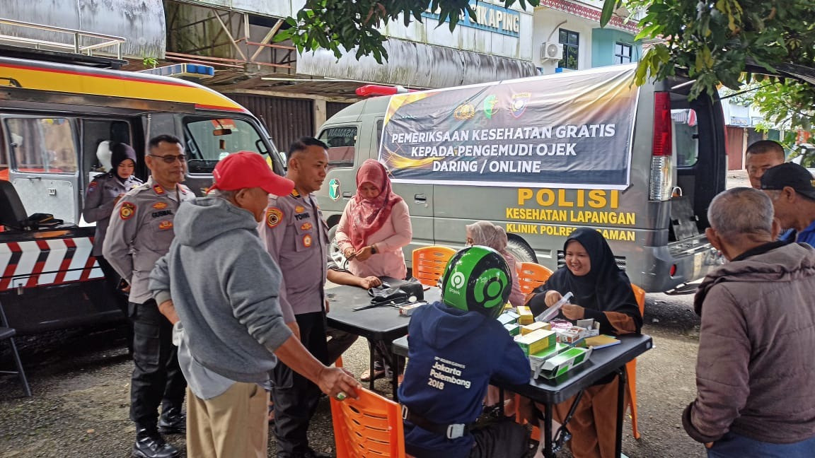 Dalam kegiatan tersebut pengemudi ojek online yang diperiksa sebanyak 55 orang yang diberikan pelayanan kesehatan gratis oleh polres pasaman.
