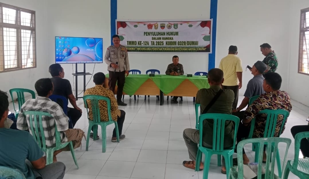 Rambaberita.com, DUMAI – Program TNI Manunggal Membangun Desa (TMMD) ke-124 Kodim 0320/Dumai tidak hanya fokus pada pembangunan fisik, tetapi juga menyasar peningkatan kesadaran hukum masyarakat melalui kegiatan non fisik. Salah satu agenda penting dalam rangkaian kegiatan tersebut adalah penyuluhan hukum yang digelar di Kelurahan Bukit Kayu Kapur, Kecamatan Bukit Kapur, Kota Dumai, Selasa (27/05/25)