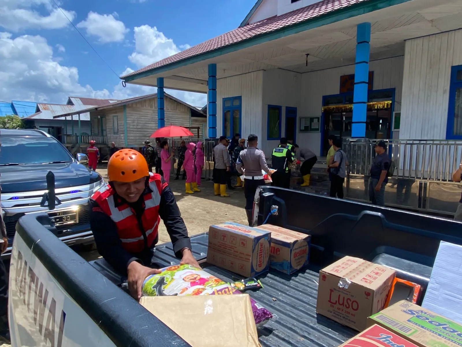 Tim Brimob tiba dengan membawa berbagai kebutuhan pokok seperti beras, mie instan, minyak goreng, air mineral, serta perlengkapan kebersihan. Bantuan ini diberikan sebagai bentuk tanggap darurat guna membantu meringankan beban masyarakat yang tengah dilanda musibah banjir akibat cuaca ekstrem dalam beberapa hari terakhir.